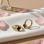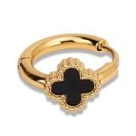 Add a chic touch to your style with these black clover stud earrings from Aviva Jewels. Designed with a unique four-leaf clover-inspired motif in a glossy black stone, bordered with a textured gold-tone frame, these earrings bring sophistication with a modern twist. Perfect for casual outings, parties, and festive wear, they make a versatile addition to every jewellery collection.