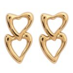 Aviva Jewels Double Heart Gold Plated Stainless Steel Stud Earrings for Women