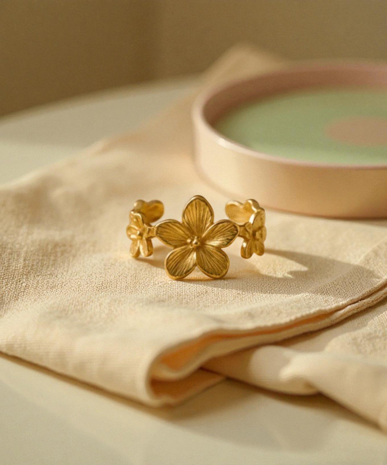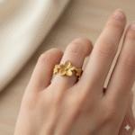 Aviva Jewels Gold-Plated Adjustable Stainless Steel Floral Design Ring for Women