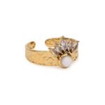 Aviva Jewels Gold-Plated Adjustable Stainless Steel Women’s Crown Design Pearl Ring