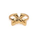 Aviva Jewels Gold-Plated Bow & Heart Adjustable Stainless Steel Women’s Ring