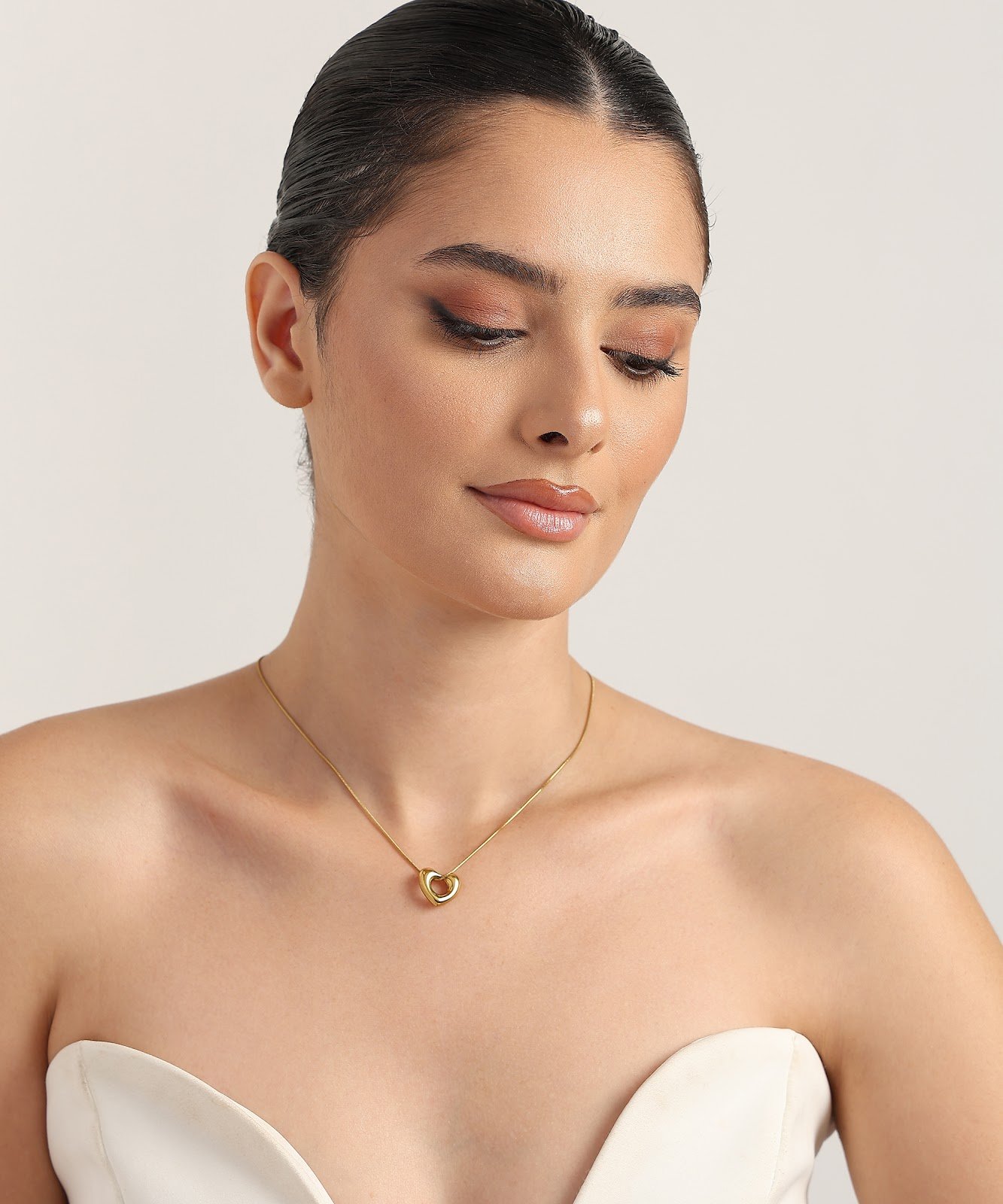 Celebrate love and style with the Aviva Jewels Interlocked Heart Pendant Necklace. Designed with a sleek gold-plated snake chain and a bold interlocked heart pendant, this necklace adds a romantic yet contemporary charm to any outfit. Lightweight and versatile, it can be worn daily or styled for parties, festive occasions, and date nights. A meaningful accessory and a perfect gift for loved ones.