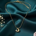 Shine like the night sky with the Aviva Jewels Moon Pendant Necklace. This necklace features a crescent moon pendant adorned with a sparkling cubic zirconia stone, paired with a sleek gold-plated snake chain. Elegant yet trendy, it is perfect for daily wear, festive occasions, or as a thoughtful gift. The celestial-inspired design makes it an eye-catching piece that adds charm and sophistication to any outfit.