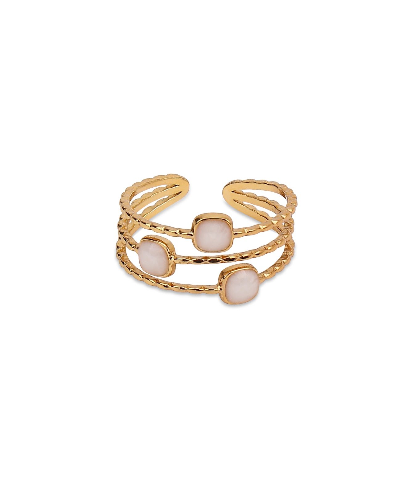 Aviva Jewels Gold-Plated Triple Band Adjustable Stainless Steel Women’s Ring with White Stones