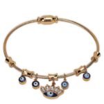 Aviva Jewels Stainless Steel Gold Plated Evil Eye Charm Bracelet for Women & Girls