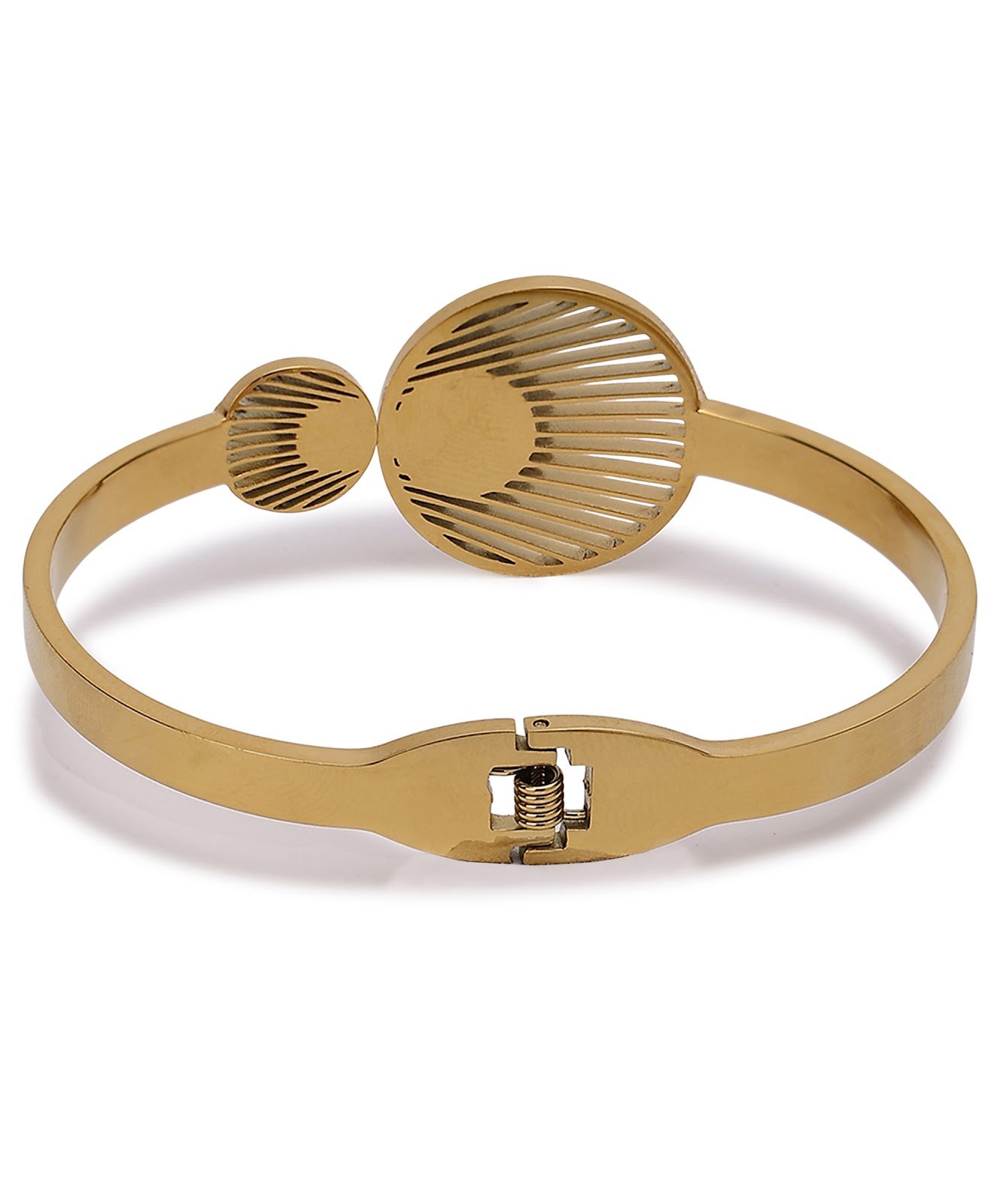 Elevate your style with the Aviva Jewels Stainless Steel Geometric Designer Bracelet. Featuring a unique circular cut-out pattern with a modern artistic look, this bracelet is perfect for those who love contemporary and statement accessories.