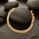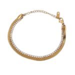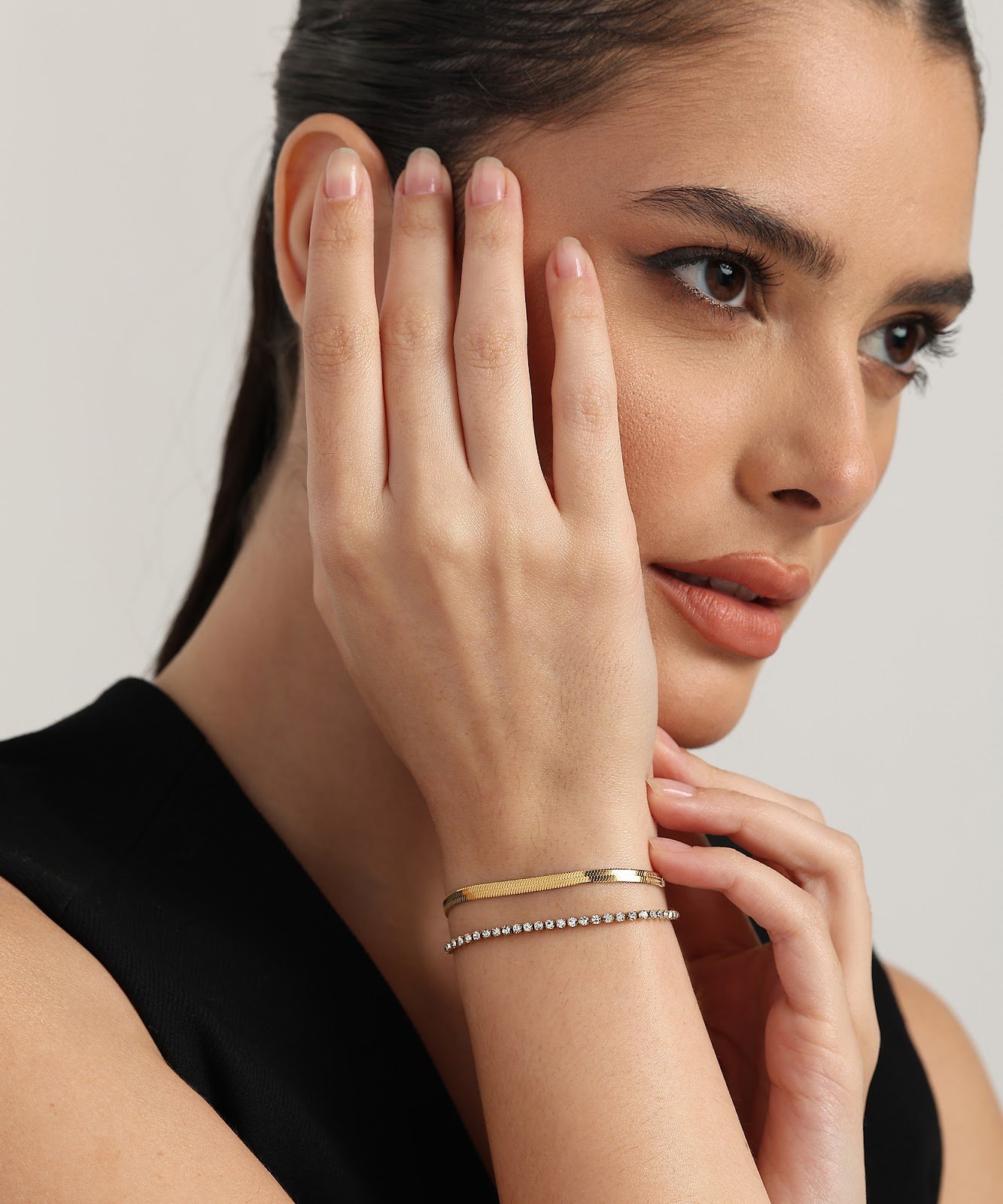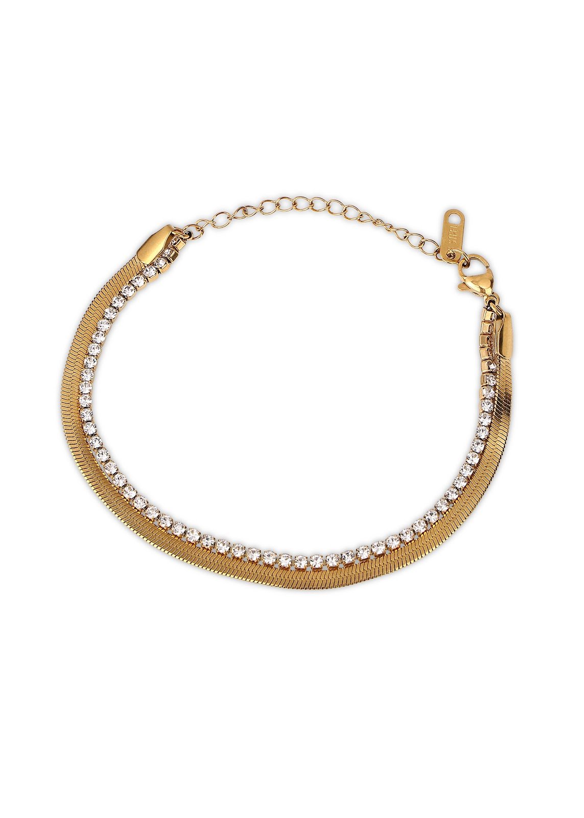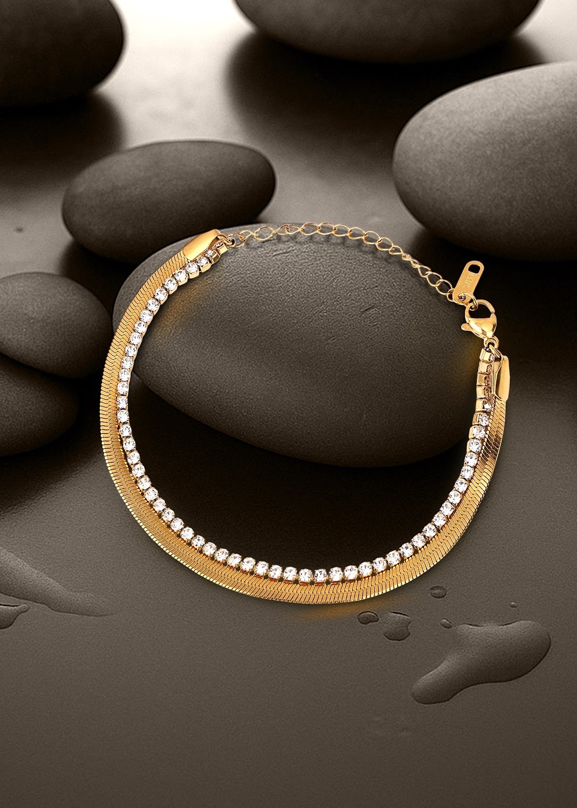 Aviva Jewels Stainless Steel Gold Plated Snake Chain & CZ Stone Dual Layer Bracelet for Women & Girls